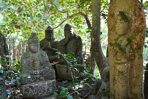 | 摩尼王寺は「昔は七堂伽藍の甍がそびえ、真言宗一千余カ寺の本山であった」という。とても信じ難い。ここからも妙高山の眺望がいい。農家の奥さん二人と出会って立ち話、「遠いところから来たんだね」、「お寺をまわっていいことあるの?」。私、「何もありません」。 昔、篤く仏教に帰依していた中国の梁の武帝が、インドから来た達磨大師を宮中に招いて問うた故事がある。 武帝 「朕、即位以来、寺を造り、経を写し、(略)、何の功徳か有る」 大師 「無功徳」 そういうことで功徳は得られるものではないという謂であろう。 |