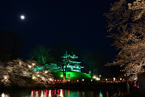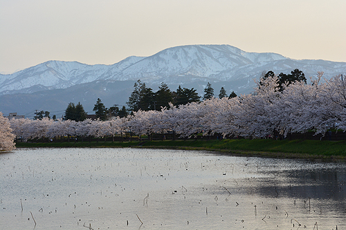 | 5時前にホテルにチェックインして、高田公園の夜桜を見に行った。 ここは同期入社のO君の故郷で、開花情報などを教えてもらった。外堀に来て驚いたのは、蓮。桜もさることながら、堀いっぱいに蓮が咲いたらすごいだろうなと桜を前にして感じ入ってしまった。 | |
