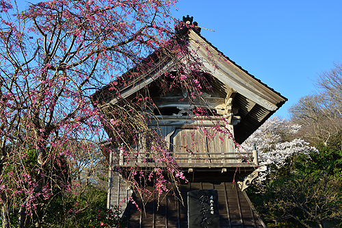 | 本堂前から寺泊港 | 鐘楼 潮風から鐘を守るため板戸がある |