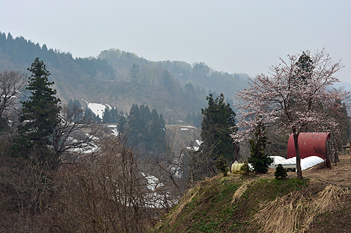 | 今の私にとってきれいな桜とは旅の途中に期せずして出会った桜で、美しくいつまでも印象に残っている。新潟ではいくつも出会った。中でもこの桜の咲く山里の風景はフォトジェニックでお気に入りだ。 | |