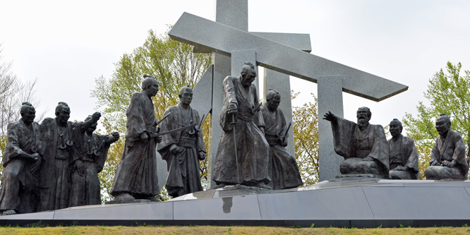 | 私の頭の中では、長岡と言えば花火と米百俵となる。戊辰戦争に敗れ窮状にあった長岡藩に支藩から贈られた米百俵、 米を分けろと迫る藩士に説く小林虎三郎。その群像があった。 | |