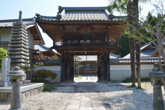 | 威代寺からは徒歩5分。こちらの山門が珍しい。鐘楼門のようであるが、仁王門でもある。小ぶりな仁王様がチャンとおられる。滑車につるした大数珠が山門に架かっているのも初めて見る。子安観音を祀る。 | ||