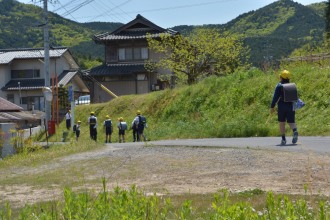 | 洞禅院から武並駅へ5qを歩きはじめる。「観音様にお参りかね。駅までは大きな道を行けば迷わないから」と田植えの奥さん。 | ||||||