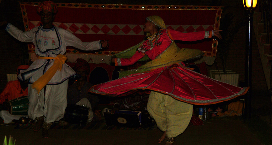 2003年にインドにいった時の写真だ。ジャイプールのホテルの庭隅で、薄明りの中で踊っていた。ホテルのステージとは違い素朴で物悲しく、カメラを構えるのさえ何故か躊躇した。ノー・ファインダー、ノー・フラッシュでシャッターを押した。カメラはFujiのFinePix S2 Pro、レンズはNikon 35-70F2.8。これ以来、デジカメ一本になる転機をもたらしたショットとなった。”旅衣”10周年を迎えて一ヶ月間だけ蔵出し再登場。 (2003年10月)