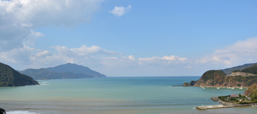 若狭三十三ヶ所を車で回っていた時に、小浜市の田烏で国道162号に出ると目の前に広がった入江の景色。晩秋には不釣りあいなほど青く澄んだ海に、家内とそろって綺麗だと声を上げた。 (2013年11月)