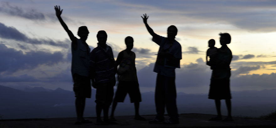 リタイアしたら行こうと決めていたニューギニアに行った。村の小学校の校庭脇から夕陽をとっていると先生や奥さんや子供たちが集まってきた。心温かい”さようなら”。 (2011年6月)
