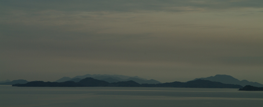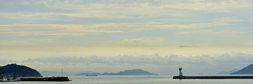 島根の出雲三十三ヶ所を廻った帰りに広島県福山市の阿伏兎観音に立寄り、更に明王院に車を向かわせると鞆の浦に出た。柔和な色合いの朝の瀬戸内の空と海だった。単身赴任中に幾度か朝夕に瀬戸内を撮ったが、この独特の優しげな色合いが懐かしく、車を止めてシャッターを切った。(2015年4月)