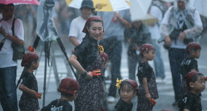 2002年8月、会社の夏期連休にY君と高知・鳴門に行った。高知でよさこいを見ていると突然の雨となった。Y君がさしてくれた傘の下でこのショットを撮った。
