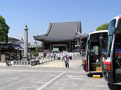 | 第五十九番 国分寺 ご本尊は薬師如来、お札を頂く。 国分寺の近くに差し掛かった時、後ろから『オーッ、 オーッ』と叫ぶような声がする。振り返るが誰もい ない。又、声がして今度は私を追うように走ってくる。 言葉の不自由な方らしい、歩きながらしきりに話しか けてくる。でも、よく聞き取れない。『バスに乗るのか ?』と聞かれたようなので、『桜井駅から電車に乗っ て、今日は帰ります』と話したら、がっかりしたように 立ち止まってしまった。 |