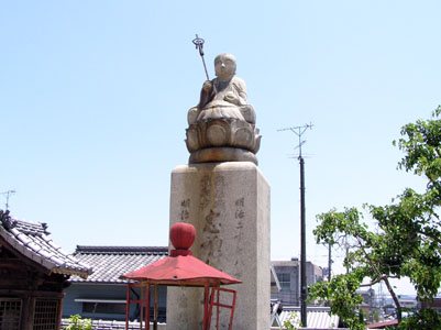 | 第五十六番 泰山寺 五十四番から3kmほどの距離にある。 途中、国道で車が巻き上げた砂粒が右目に入り痛い。 一大事と近くの「ちゃんぽん」の店に入り、目を洗って、 昼食をとる。 泰山寺には国道から折れる道を間違え、大回りして 到着。ご本尊は”地蔵大菩薩”。 |