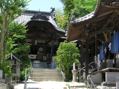 第五十八番 仙遊寺 遍路道を登ってきたら思いのほか早く着いた。 西条から来られたという年配の男性と山門で出会い、 話しながら本堂までの長く急な坂を登る。 |