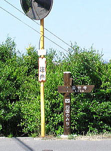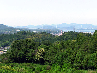 今治郊外に向けて1時間、青葉の参道が迎えて くれる。 途中道を尋ねた初老の男性に100円のお接待を 受ける。 丘を越える遍路道を行く予定であったが、 『歩きにくいので、こちらの道がよろしい』との御忠 告に従う。 |