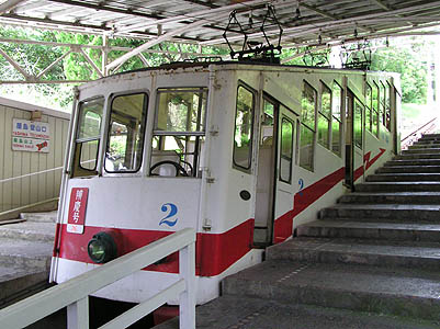 | ケーブルカー弁慶号。 高校時代の旅行では、高校の級友と彼の母親に屋島 に連れてきてもらったが、このケーブルカーに乗った記 憶がない。 |