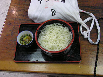 | 結願記念に門前の店で”たらいうどん”を食べる。 元気をつけて徳島の土成の前坂翁に会いにいく つもりなのだが携帯を何度かけてもつながらい。 (後で頂戴した手紙では旅行中であった由) |