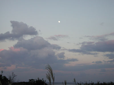 もう何年も忘れていた風景に出会う。 薄暮の月は宵待ちの月、、、当たり前か〜 |
