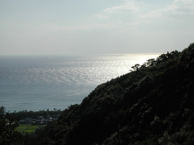 55号線沿いの食堂で昼を済ませ、二十六番へ。 遍路道の入り口が分からず、結局車道を45分かけて 登る。汗がでる。 途中、土佐湾を望む |