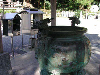 立派な香炉。龍が好きなので、龍の造形物に目が 行く。 こういう大きなものでも香炉と呼ぶのだろう か? 納経所で近道になるはずの遍路道の降り口を尋ね るが、呑み込めない。車道を下ると時間のロスが大 きい。 来合わせた徳島の若い男性に車で55号まで送って 頂くお接待を受ける。行当岬まで乗せて頂いた。 |