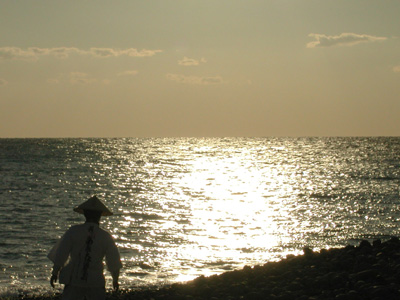 | 土佐くろしお鉄道ごめん・なはり線、唐浜駅の シンボルはお遍路さん。 唐浜駅から後免駅に向かい、帰路に着く。 今回の忘れ物 初日の6日に徳島駅で降りた特急『うずしお』に 同行二人のお印のある菅笠を置き忘れてしまった。 徳島駅に電話して、またもや宅急便着払いにて 送り届けてもらう。 薬王寺にて少し小ぶりの菅笠を、今後のことも あり予備として求める。 |