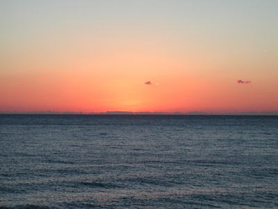 黒潮の海に陽は沈んだ。 まだ羽根岬は遠い。 すっかり暗くなって6時近くに羽根岬を過ぎる。 30分程歩いて寒さもありGIVE UP。バス停に座り込む。 10分程まってバスに乗る、奈半利にある今夜の宿は かなり先とのこと。運転手さんに、バス停ではないが 宿に一番近いところで降ろして頂く。7時近くに到着。 美しいウエイトレスさんのお奨めのカツオのたたき定食 を頂く、季節外れのはずなのに、大変美味だった。 |