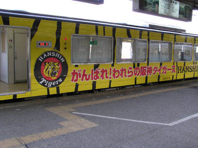 しまんと3号に乗換え、10時28分高知駅着。 乗換えのためホームを移動すると、阪神安芸キャンプ 場行の電車が、、、 これには乗らず、しばらく待って須崎行きの普通電車 に乗る。 |
