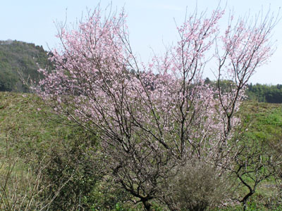 波川の駅から仁淀川沿いに歩いて35番札所に 向かう。遠目に桜が入る、「さすがに高知は早い、 もう桜が」と感心しながら近づくと、彼岸桜だ。 それでも早い。 |