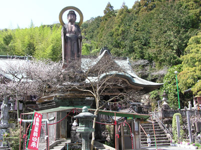 | 郷里の岐阜に谷汲山華厳寺(西国三十三番札所) があり、そこの戒壇廻りは本堂の地下を卍に廻る 本格的なもので、信州の善光寺さんの戒壇めぐり よりすばらしいと思う。 境内の見晴台に鮮やかに紅梅が咲いていた。お札を もとめ一休みして、34番に向かう。約10Kmの道程。 |