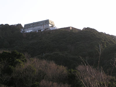 宿は国民宿舎『土佐』。 太平洋に出張った標高250m余りの宇津賀山の上に あり、車道を歩いて小一時間かかった。 普通の部屋は満室で、ユースホテル形式の相部屋と いう一泊2800円也を予約しておいた。 |