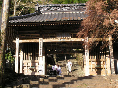 第三十五番 清滝寺 麓から山道を30分程登っていくが、久しぶりの遍路の せいか、かなりキツイ。 ここは戒壇廻りができるというので楽しみにしていた。 しかし、本堂の付近に戒壇の入り口がない、納経所で 尋ねると、薬師如来像の下という。 なるほどよく見ると、大きな像の下に暗い入り口がある。 ここから本堂の下にいくのは凄いと思って入って行くと、 暗闇を急な螺旋状にグルッとまわって1分ほどで出てき てしまった。本堂ではなく如来像の下の戒壇であった。 珍しい戒壇廻りを楽しんだ。 |