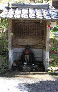観音様にもお参り。観音様の奥に『目洗いの井戸』 がある。 弘法大師が錫杖で湧かせた井戸で、眼病に御利益 があるという。さっそく目を洗い、ペットボトルにも頂 き持ち帰る。 |