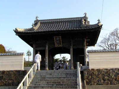 第四十番 観自在寺 3月29日 民宿からすぐの山門に来ると、7時前なのにもうお参り を終えた団体の方達と行き交う。 昨夜はよく眠れなかった。バス通りに面した古い宿の 二階は大型車が通ると振動が伝わり、二度三度と寝入 りに失敗した。 |
