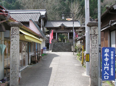 第三十七番 岩本寺 9時4分宿毛発、10時窪川着。窪川は宿毛と高知 の中程にある静かな町だ。 旅程の都合でとばした三十七番札所に参る。駅か ら1Km足らずの街中に山門がある。 |