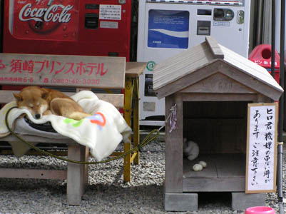 | これも珍しい、境内に犬が飼われてる。 ヒロ君という。 |