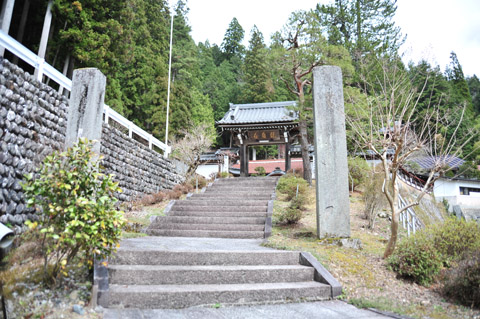 本覚寺から桂峯寺までは5.5q。前半下りで後半は登り、下り道を早く歩いて時間を稼ぐ。10sぐらいの荷物を携えているのでかなりこたえる。桂峯寺近くまで来て先にバス停を探すと、たまたま桂峯寺への近道となる石段を見つけた。このつづら折りの石段もきつかったが、遅れを取り戻すことができた。桂峯寺から次の札所までは10q以上あり、再びバスで。