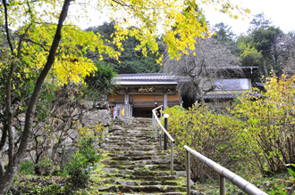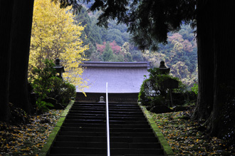 | 馬頭観音様が居られるお寺 まごじ | 庫裡へ上がっていく石段 | 紅葉散り敷く |