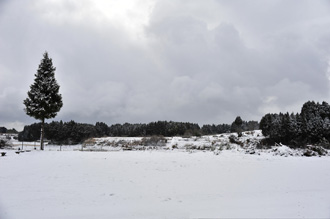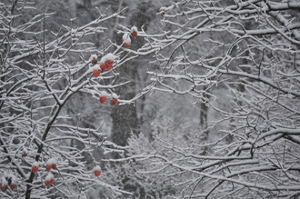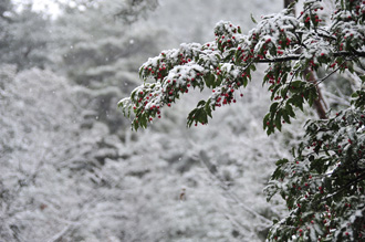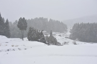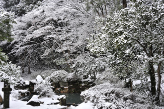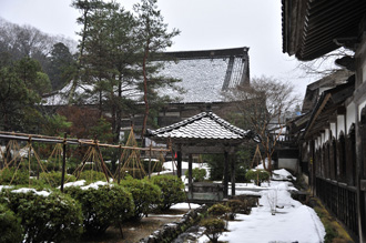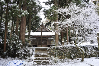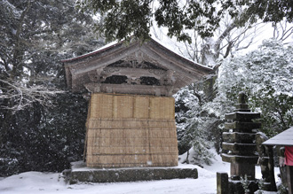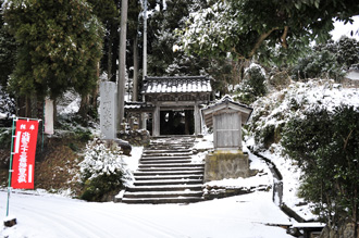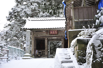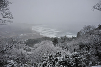 曽々木海岸を見下ろす岩倉山の中腹にお寺がある。40分かけて山を登って行った。山道にも境内にも新雪で誰の足跡もない。木々もただ白い。観音浄土の補陀落のようだと思った。静けさも心地よい、妙音観世音。 |