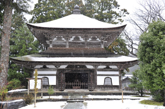 | 鐘楼 | 本堂 阿弥陀如来像も素晴らしい | 石造五重塔(重文)とお釈迦様のお堂 |
