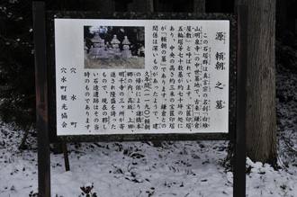 真脇から45分で宇加川のバス停に。さらに明泉寺まで20分を歩く。途中、源頼朝の墓に立ち寄る。弘法大師が修行したと伝えられる古刹である。