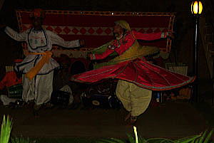ジャイプールのホテルで民族舞踏を見る、チャンチェロさんが手配してくれた。 一番いい席で貸切状態で見物。 だが、なぜかもの悲しい。