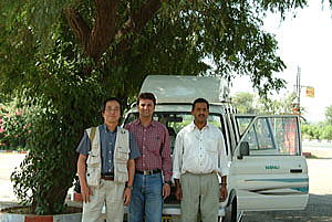 途中のレストランにて記念撮影。 中央がガイドのチャンチェロさん右がドライバーのバワンさん、お二人にはお世話になりました、、、