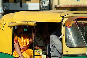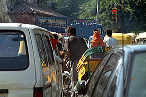 昼過ぎにデリーに戻る。 プラカードを持ったデモ隊が通ったこともあり、交差点は大渋滞。 下町ではオートリキシャ(オート三輪のタクシー)も多い。