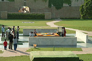 デリーに到着、地方都市とは違った雑踏だ。 レストランで再びタリー料理、やはりアズキのタリーが一番。 食事を終え、ラージ・ガート(ガンジーの墓)に向かう。いつもお参りの人が絶えないという。