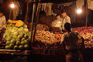 土産の紅茶を買いにダウンタウンによる。 ガス灯や白熱灯に照らし出される屋台の光景に魅かれる。