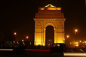 ラクシュミー・ナラヤン寺院。 ヒンズーの高僧に花輪をかけて頂く、滅多にないこととガイドさんが驚いていた。 最後に向かったのはインド門、第一次世界大戦の戦没者9万人の名が刻まれているという。