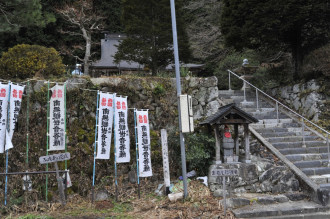 | 飛騨川右岸の霊感堂から左岸に渡る。潮音堂はGoogle Mapで所在地を拾えたので迷わず到着。白いのぼり旗を見るとなぜか嬉しくなる。お堂は建て替えて間もなく新しい。山の中で「潮音」とは解せないが、近くの川音が潮の音に聞こえることからの命名とされるようだ。増水時にはゴウゴウと轟くからかもしれない。ご朱印を預かる堂守の当番のお宅を、近所で尋ねるが不明でご朱印をあきらめる。 | ||