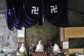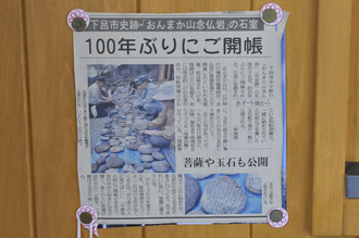 | 唵摩訶山 | 中央の穴の奥に観音様 | 石室ご開帳の記事 お経を書いた石も公開 |