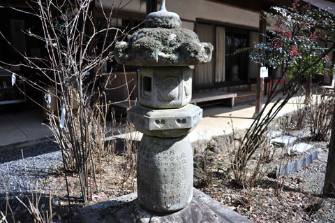 三光寺は「あじさいの山寺」として有名だそうだ。その冬枯れのあじさいの中に灯篭があり、碑が刻んである。昭和40年の欧米視察旅行の記念に奉納されたものらしい。