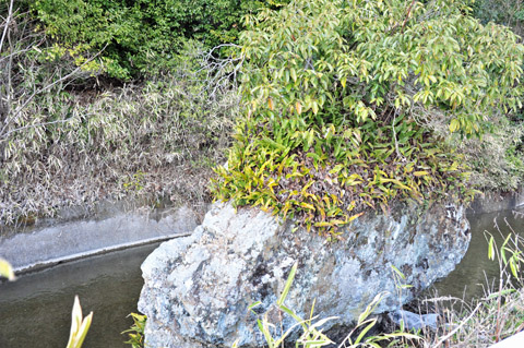 関市の恵利寺から山越えをして岐阜市の大智寺に行くつもりで、山道の登り口を恵利寺の方に教えて頂いたが結局わからず、車道を歩いた。で、妙な石を発見。案内書きがあって「毒消し岩」と言われ、飲用にもされたこの川の毒を消したと伝わる。しばらくして例の自転車五人組が追い付いてきて大智寺への道を訊かれた。