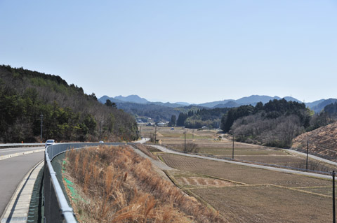 ナビが不調のため、やや遠回りながら県道を行く。東海環状自動車道も近くを通る。登りの道が結構あってピッチが下がる。1時間半近く黙々と歩いて、山道に白い観音ののぼり旗を見つけほっとする。