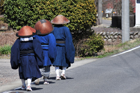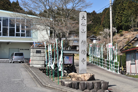 美濃加茂市に入って行く。県道を行くとゴルフ場の看板が多い。途中、津保川という青く透き通った川を渡る。伊深小学校の体育館の横を入って禅徳寺に。春休みの小学校は静かだ。