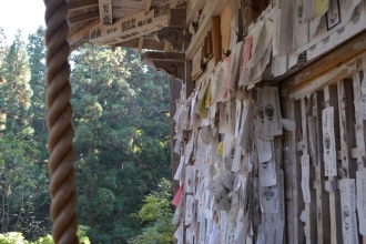 | 登り口 | 観音堂 | 願いを込めた納め札 |